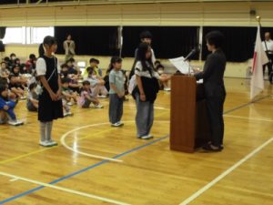 その後、児童会の認証式を行い、児童会の引継をしました。