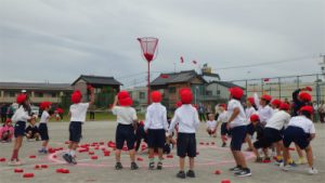 北っ子グループが紅白に分かれ、徒競走や競争遊戯、北っ子種目で競い合いました。どの種目も、子どもたちは、力いっぱい頑張っていました。