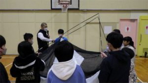 防災学習に使うテントや簡易トイレ等を、校内の備蓄室から、危機管理課の方とともに、体育館へ運んだり片づけたりしました。いざというときの災害の備えとして、避難場所や備蓄品等について知ることができたようです。