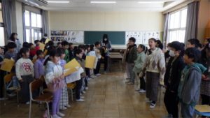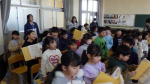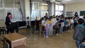 今日の北小学校 3月12日 1・3年生 2部合唱 2026.03.12 by kita-e 0 3月12日(金)の2限目、1年生と3年生が一緒に歌いました。 1年生は、12月の音楽会で3年生が歌った「地球星歌」が大好きになり、これまで練習してきました。 今日は、3年生と、校長先生もいっしょに「地球星歌」の2部合唱に挑戦しました。
