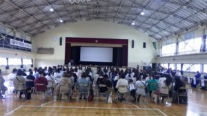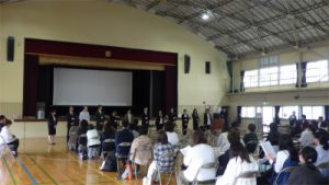 さて4月17日の午前中、新旧PTA執行部が集まって総会の会場準備やリハーサルを行いました。
