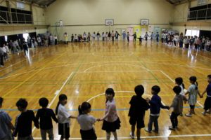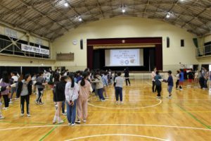 皆で円になり、お互いの顔を見ながら、校歌を1年生にプレゼントしました。
